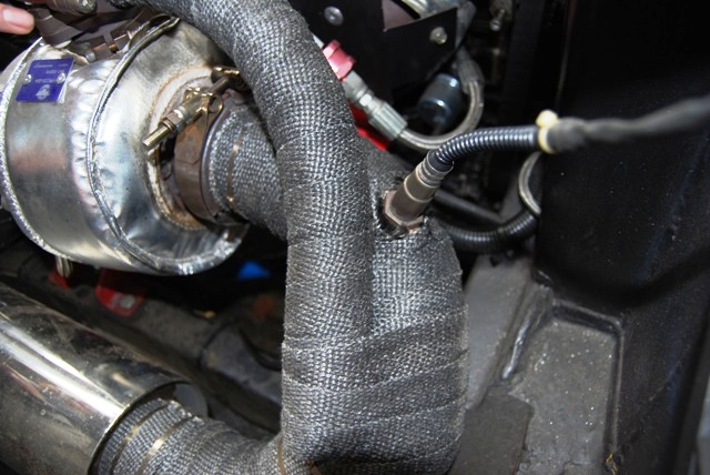 Lambda boss location - turbo applicationMost EMS can make use of a Lambda sensor which sits in the exhaust of an engine and measures the air/fuel ratio or strength of the mixture while the engine is running.  During conditions of steady state running, the EMS is able to tell from this sensor whether the mixture is rich or lean, and can make real-time adjustments to bring the mixture back to 'chemically correct'.  This generally happens only when in steady state, e.g. at idle or when cruising, and is known as ‘closed loop running’.  Over a period of time the EMS can ‘learn’ whether the mixture is rich or lean and make long term adjustments.