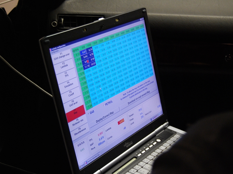 I still mapped the car okay but the idle would need sorting out once the injector had been changed. What was interesting was that this engine was fitted with an LPG conversion. The LPG ECU simply follows the original ECU signal so in theory there’s no mapping needed on gas. This works really well with the Emerald ECU because you can switch to a second map when the gas is activated. Then you can map the gas as if it was just another petrol map. The lambda reading of the mixture stays the same so you don’t even have to think about it, you just map as per normal. The fact that the AFR reading says 14.7 to 1 (when in reality it isn’t) doesn’t change the fact that this is still the correct mixture for LPG even though it isn’t actually 14.7.